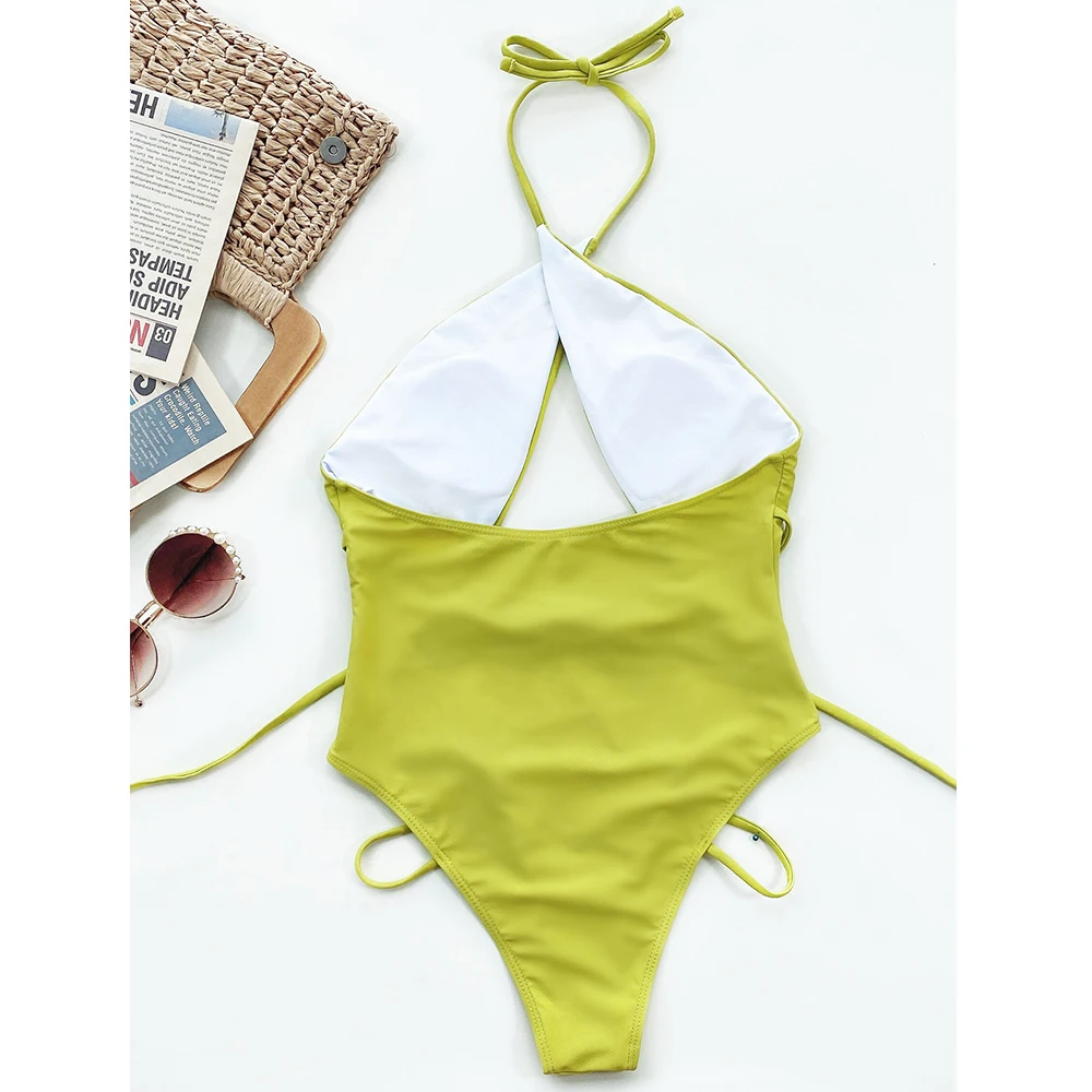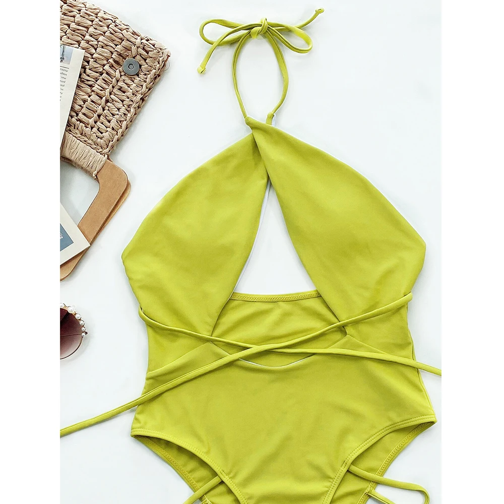 Бандажный цельный купальный костюм для женщин, новинка 2021, сексуальный купальник с лямкой через шею, женский купальник-монокини, пляжная одежда для плавания