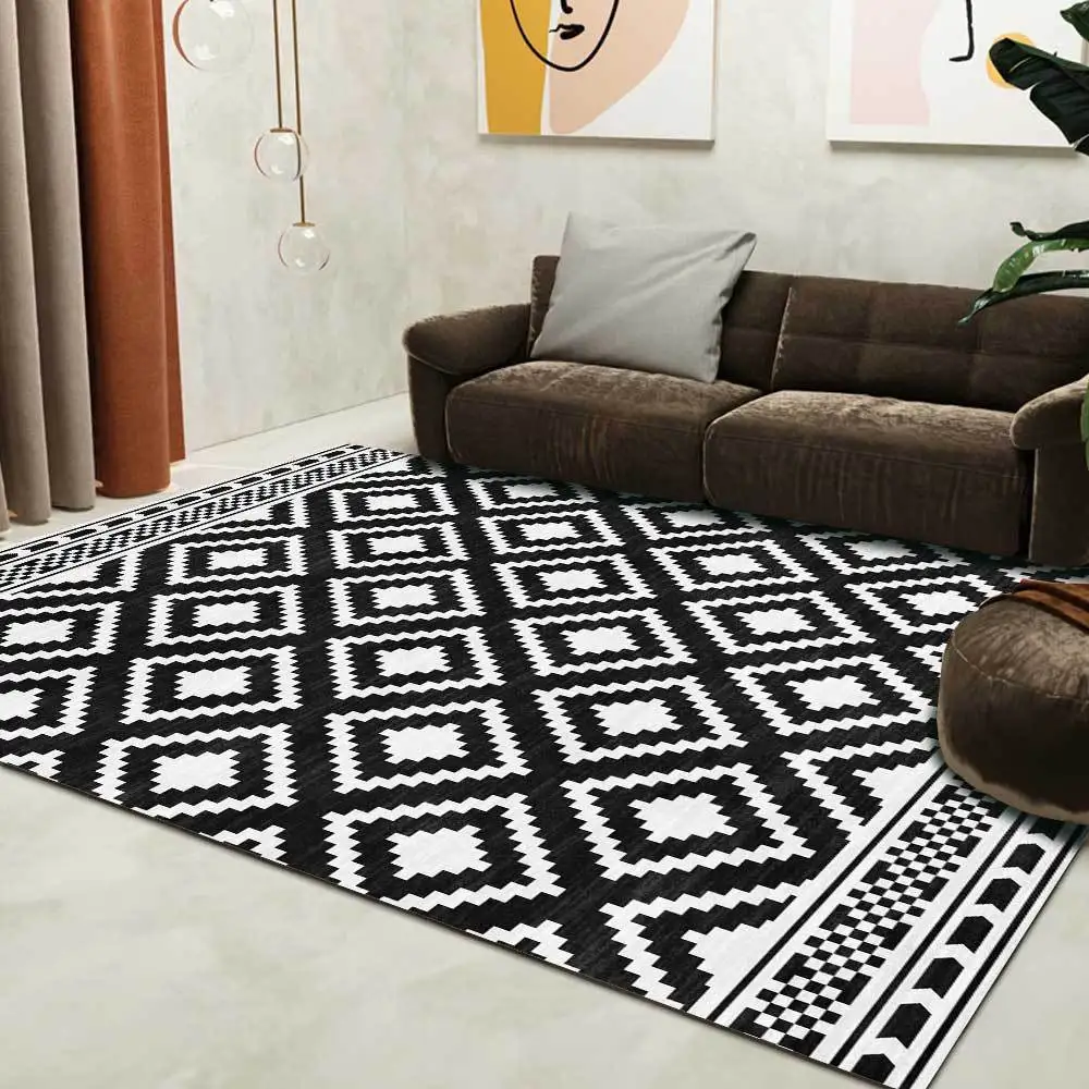 коврик входной двери ковер в гостинную Модный современный минималистичный черный и белый геометрический квадратный кухонный коврик в виде сетки для гостиной
