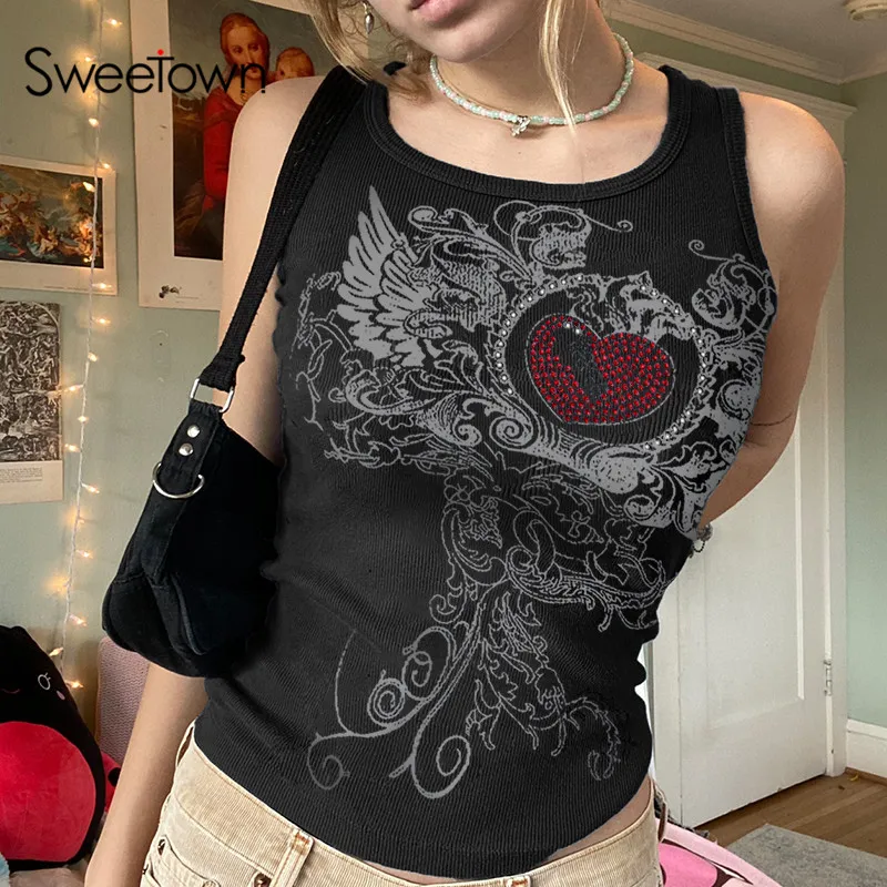 Майка женская трикотажная в рубчик, с цветочным принтом, без рукавов, с круглым вырезом
