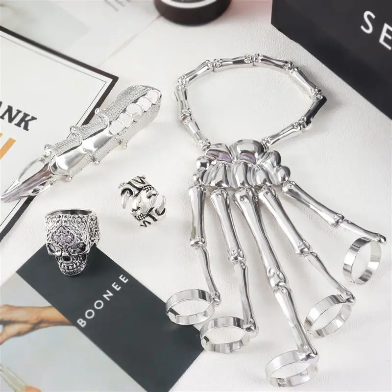 Браслет с черепом на Хэллоуин для мужчин и женщин, эластичный регулируемый браслет в готическом стиле с черепом и скелетом, браслеты на Хэллоуин, ювелирные изделия, подарок