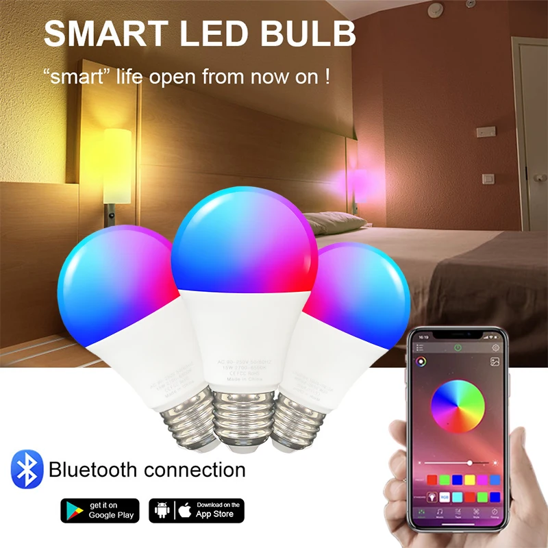 Умная светодиодсветильник лампа Tuya с Wi-Fi, E27, B22, Zigbee, 100-240 В, приложение Smart Life, RGBCW, 15 Вт, для Alexa, Google Home
