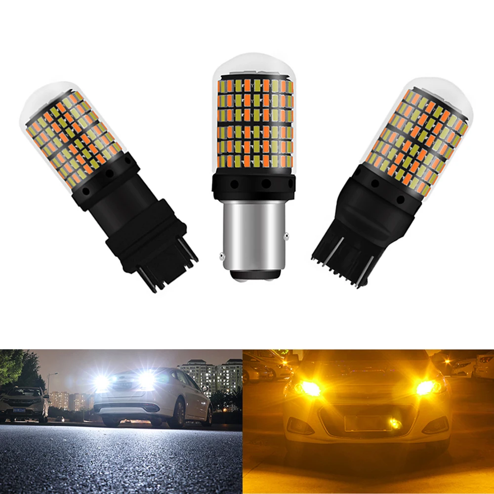 1 шт. t20 7443 светодиодсветильник лампа указателя поворота s лампа 3157 1157 drl дневные ходовые огни двухцветсветодиодный ная лампа 168 smd Canbus Автомобильный задний фонарь