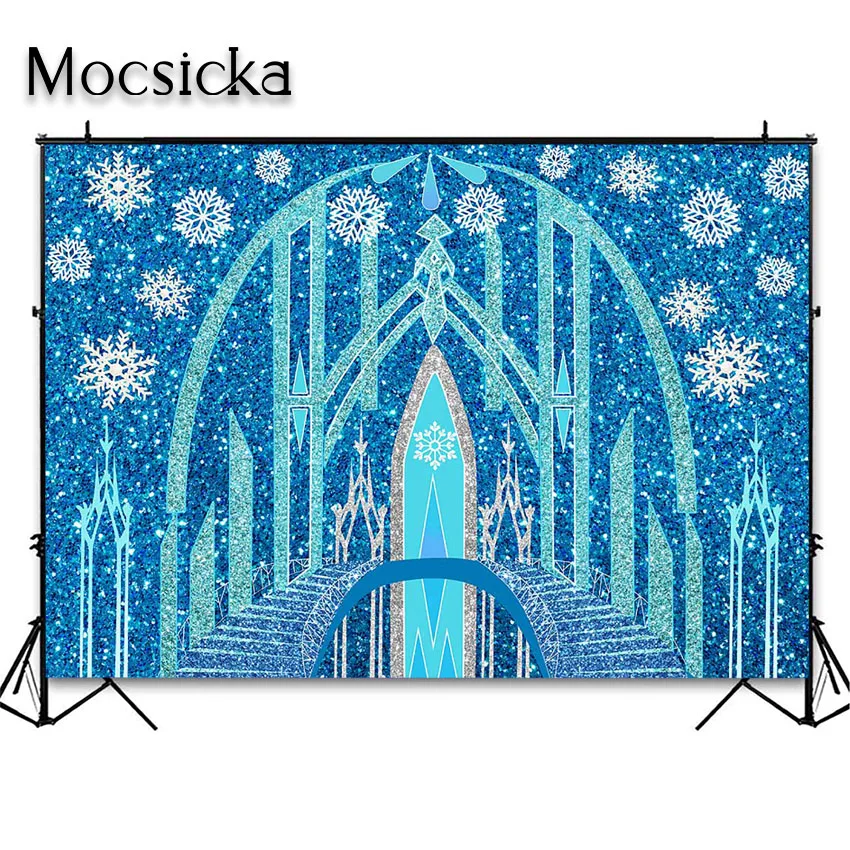 Mocsicka лед и снег синий замок фоны для принцессы День Рождения Вечеринка декорация фоны для детей зима Onederland фотосессия