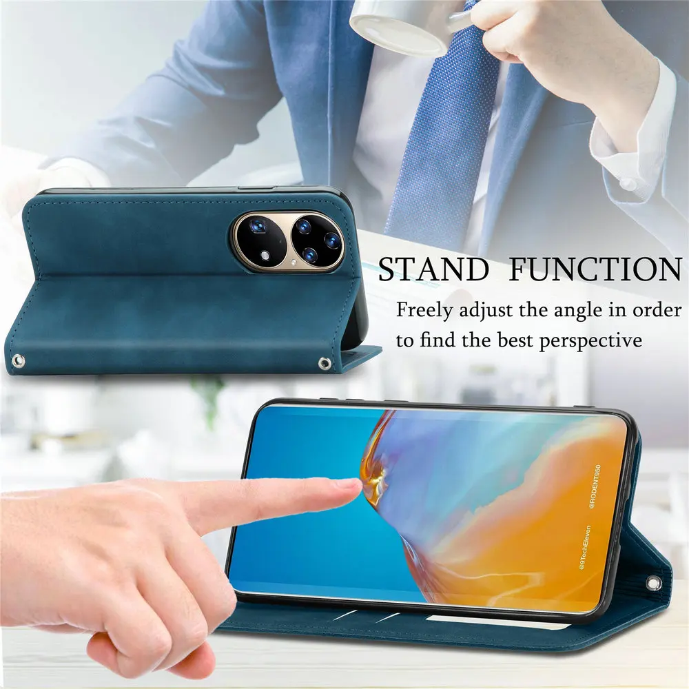 Флип-чехол P50 Pro 2021, Гладкий кожаный магнитный кошелек, держатель для телефона, чехол для Huawei P50, чехол для P 50, P50Pro, чехол-книжка, чехол для телефона