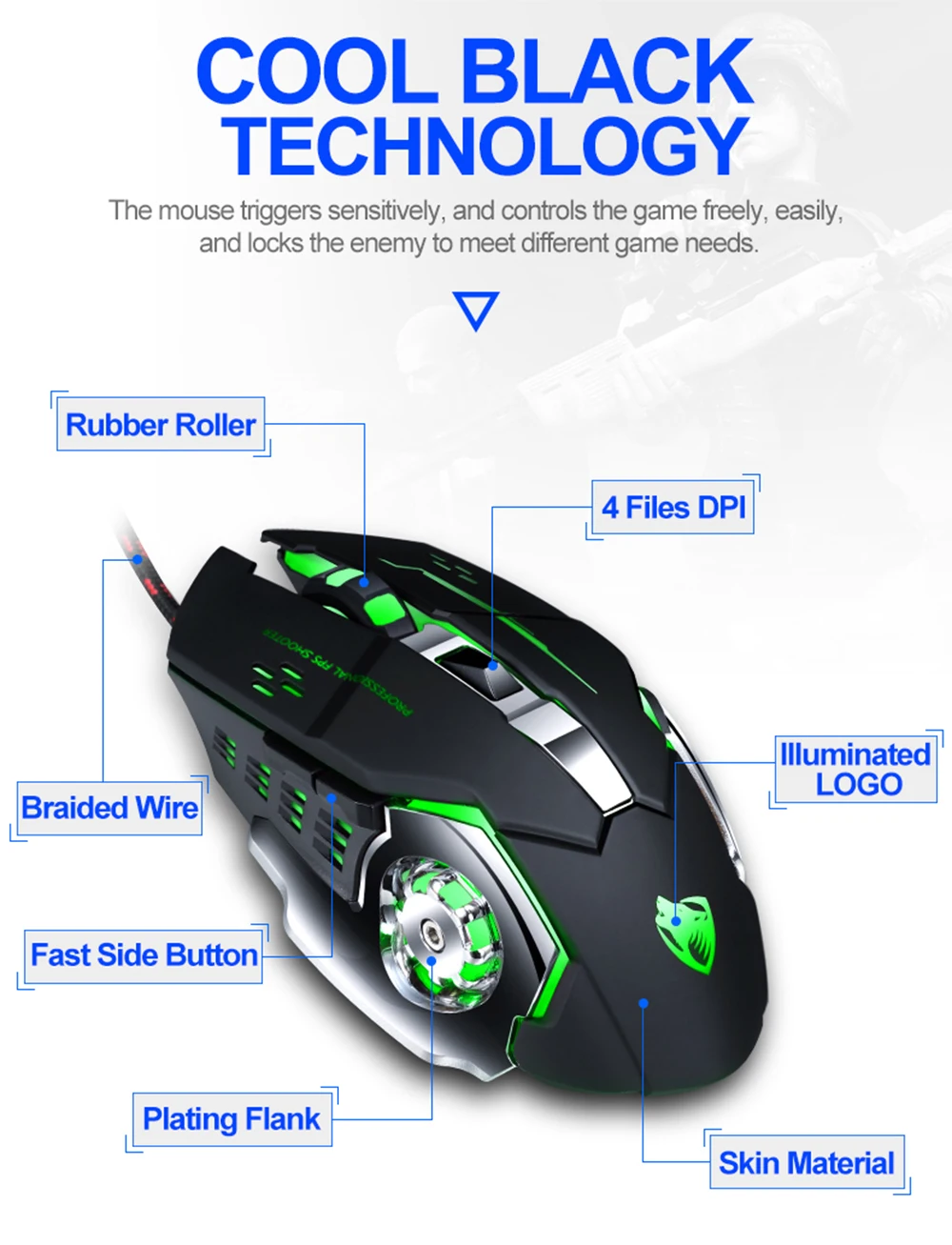 1000-6400 DPI одна кнопка регулировки, будь то пиксельный уровеньТочное позиционирование, в игре молния agile operation,Игровой офис более чем достаточно