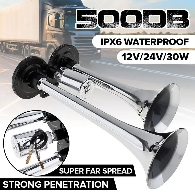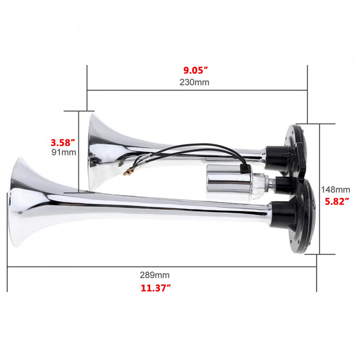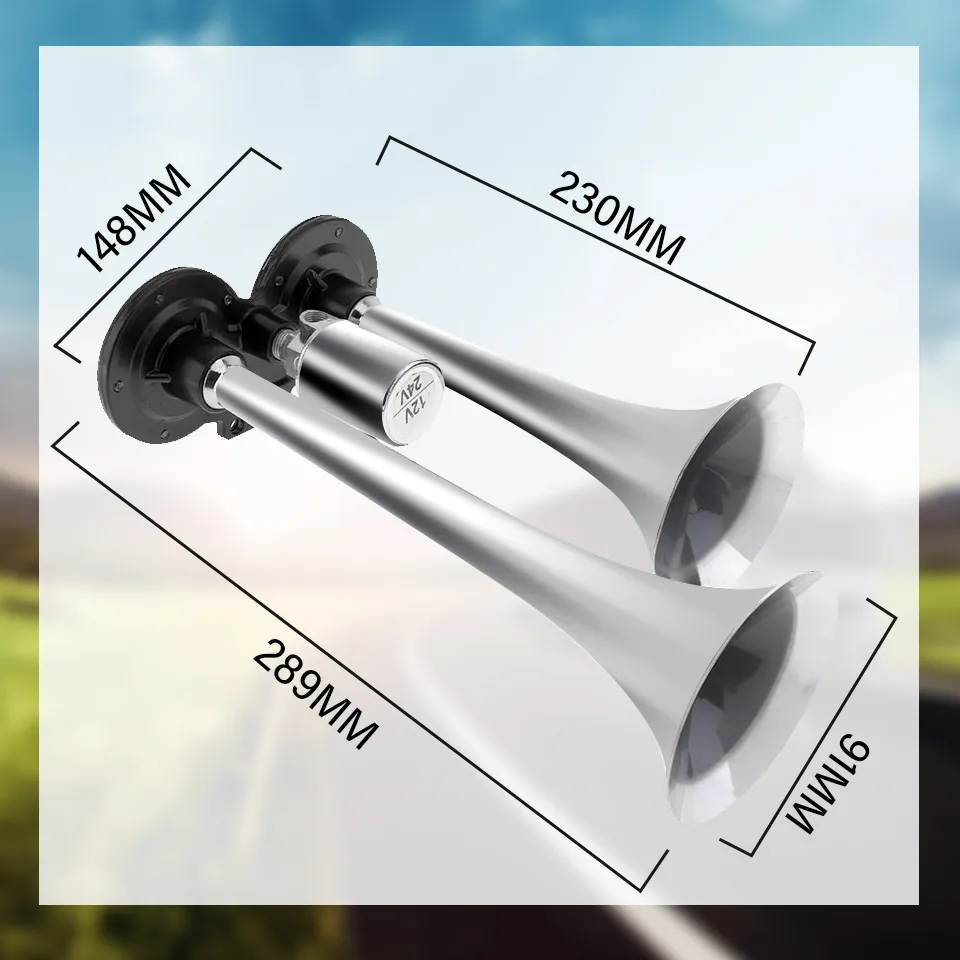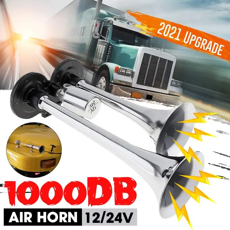 Автомобильный пневматический гудок 1000 дБ, Электрический Гудок с двойными трубками, универсальный пневматический гудок для автомобиля, поезда, грузовика, мотоцикла, очень громкий