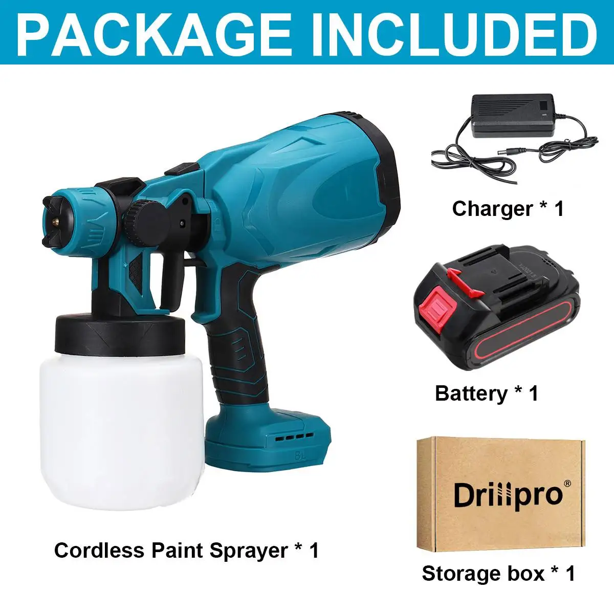 Краскопульт Drillpro, 18 в, 800 мл, беспроводной, с перезаряжаемым аккумулятором