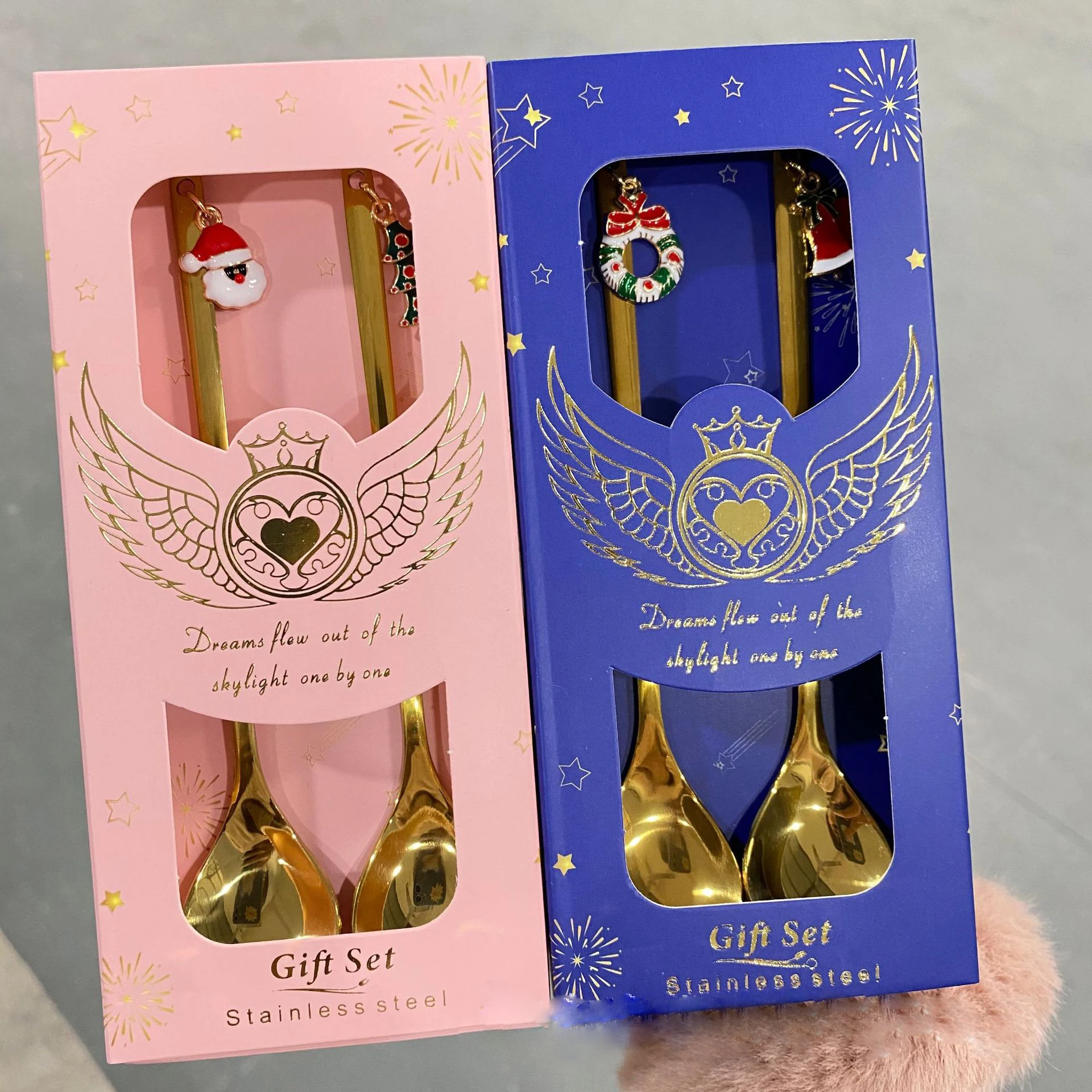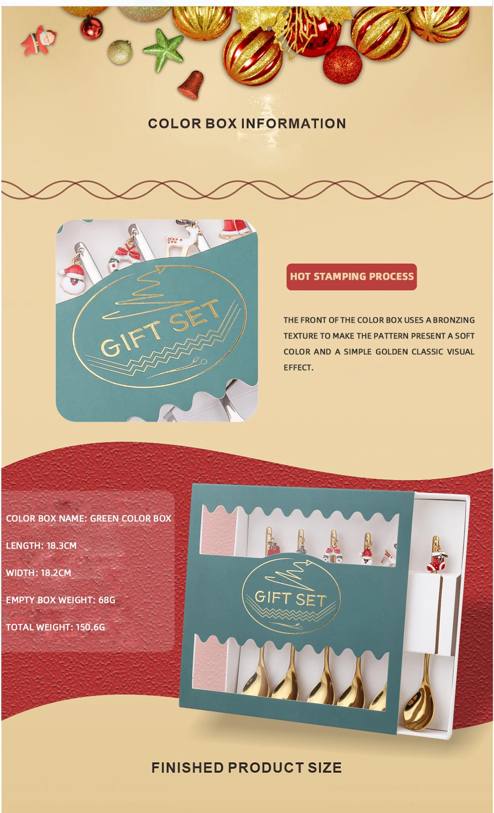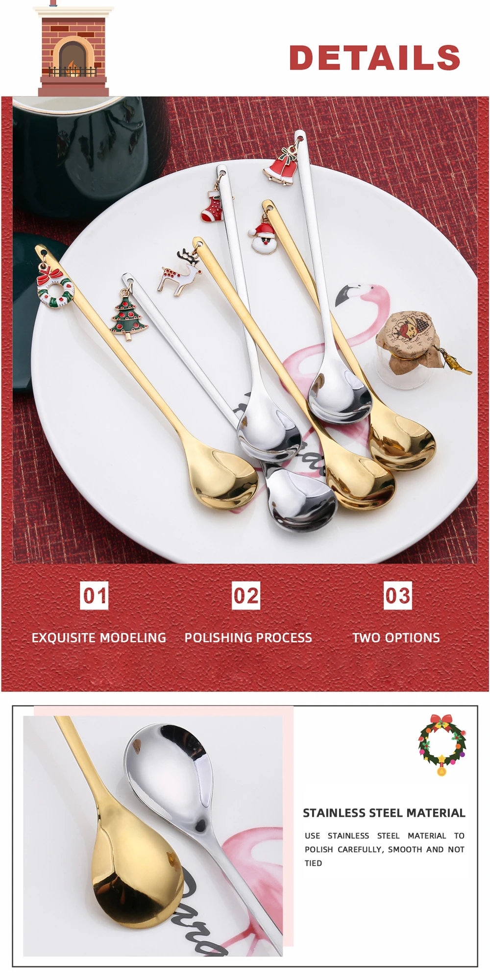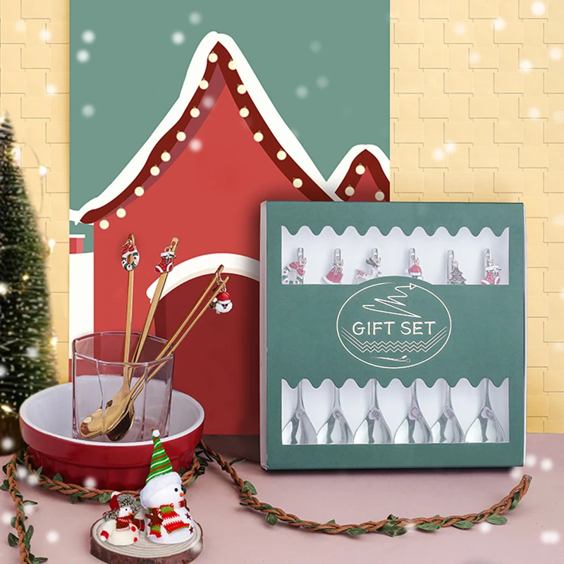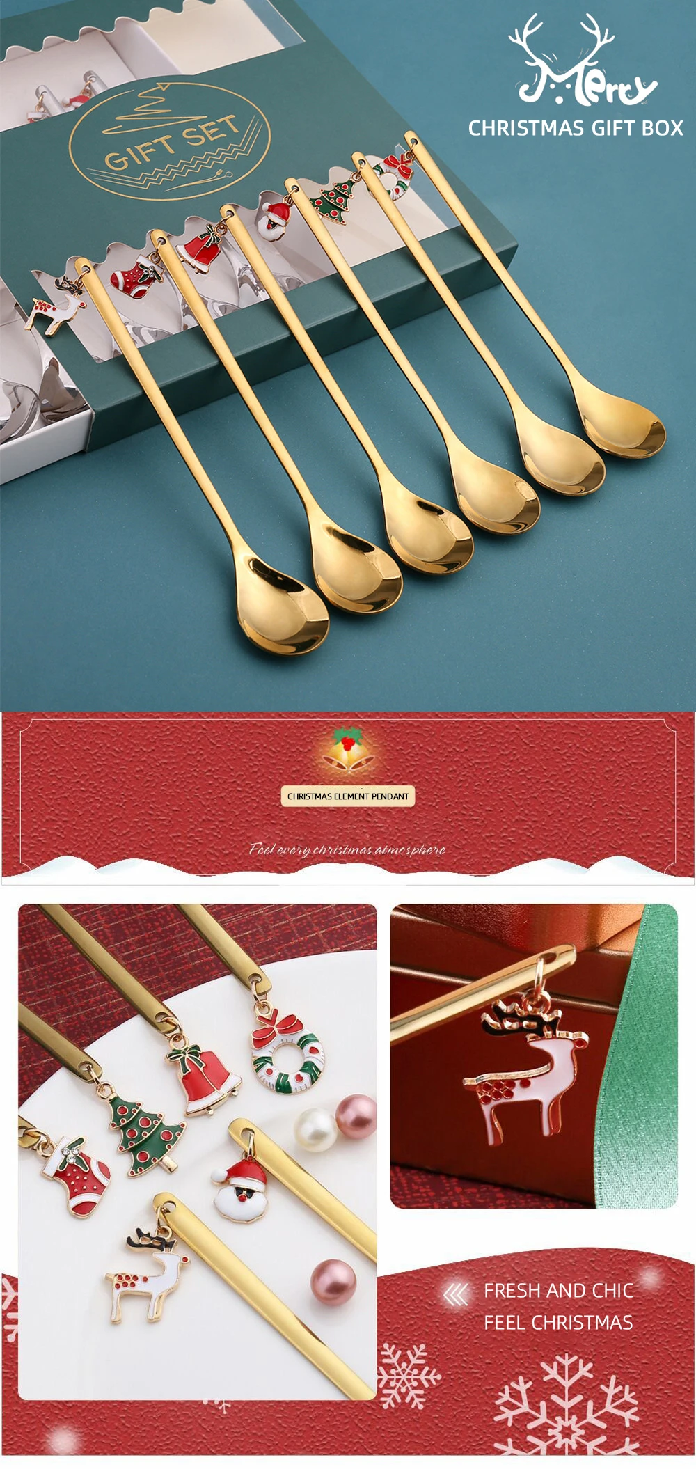 Новая Рождественская елка, посуда Санты, набор столовых приборов из нержавеющей стали, креативная подвесная ложка, 6 шт., ложки для помешивания, посуда, подарочная коробка