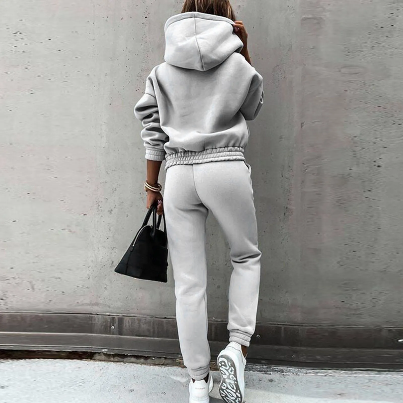 Женские зимние теплые костюмы 2021 года, комплект из 2 предметов с длинным рукавом, повседневный спортивный костюм, толстовка, Свитшот и брюки, юбка