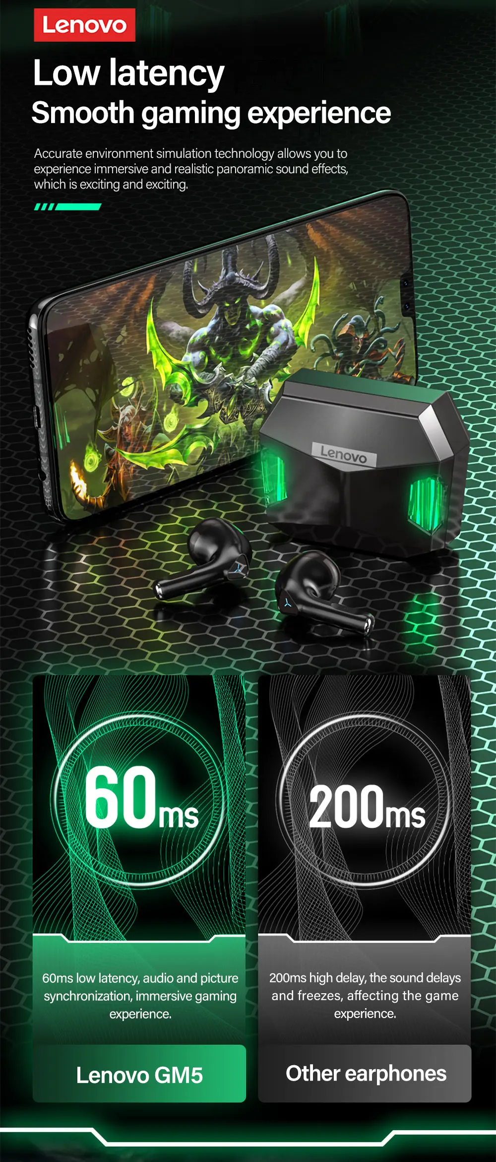 Новинка 2021, оригинальные Игровые наушники Lenovo GM5 TWS с низкой...