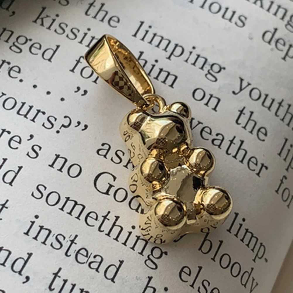 Женское металлическое ожерелье с мультяшным медведем, ожерелье золо...