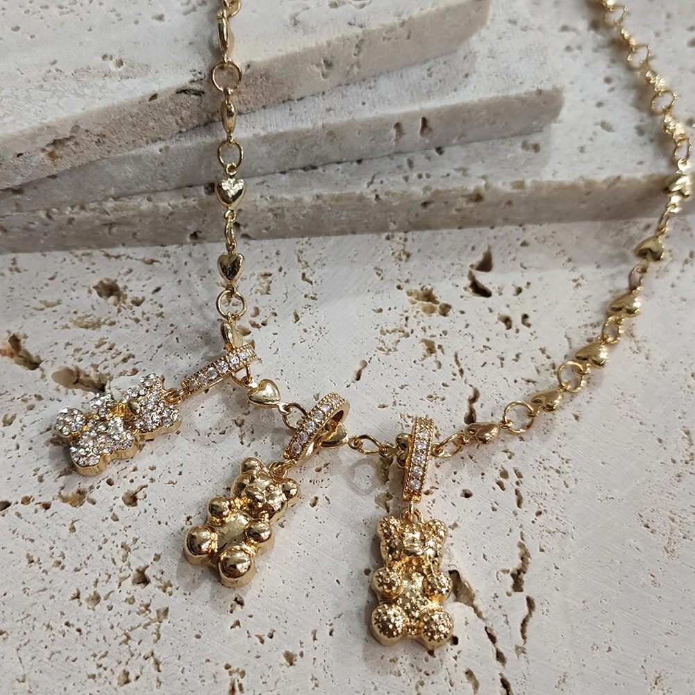 Стильное ожерелье золотистого цвета с мультяшным медведем из циркон...