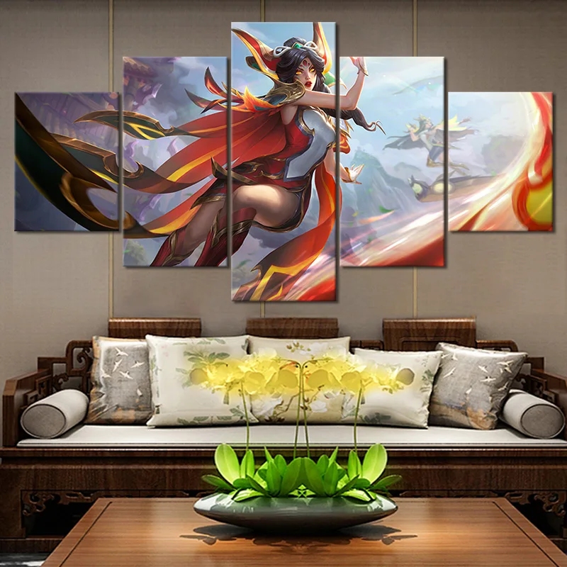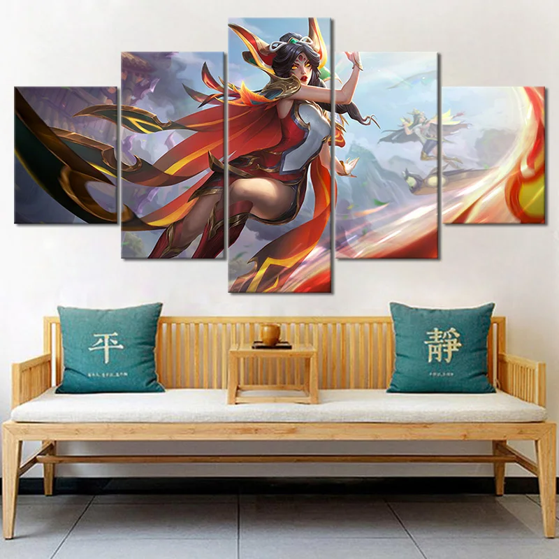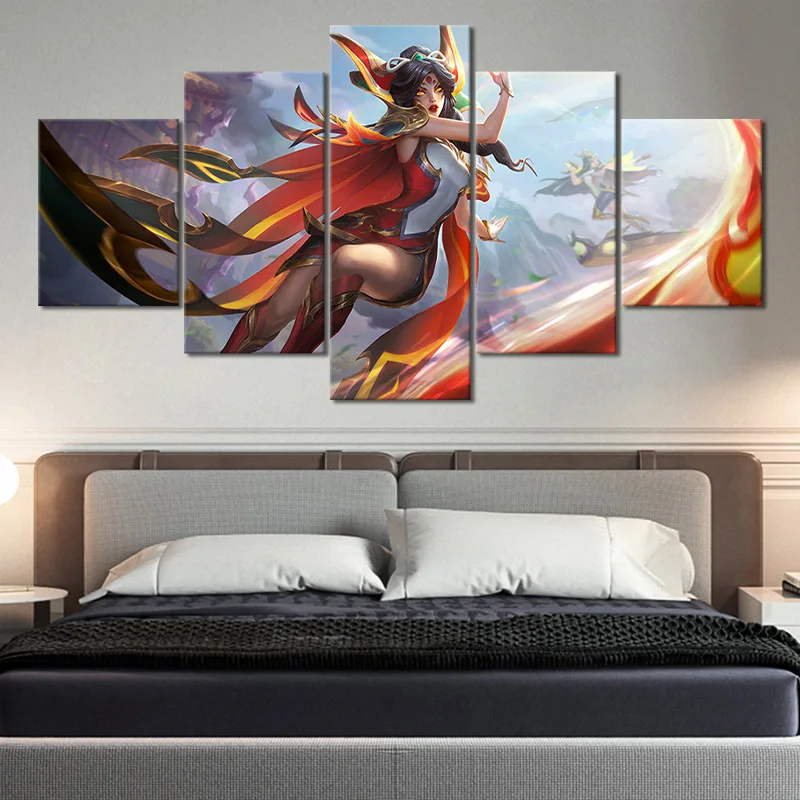 Модульные картины с аниме Akali KDA LOL, 5 панелей, HD принты, плак...