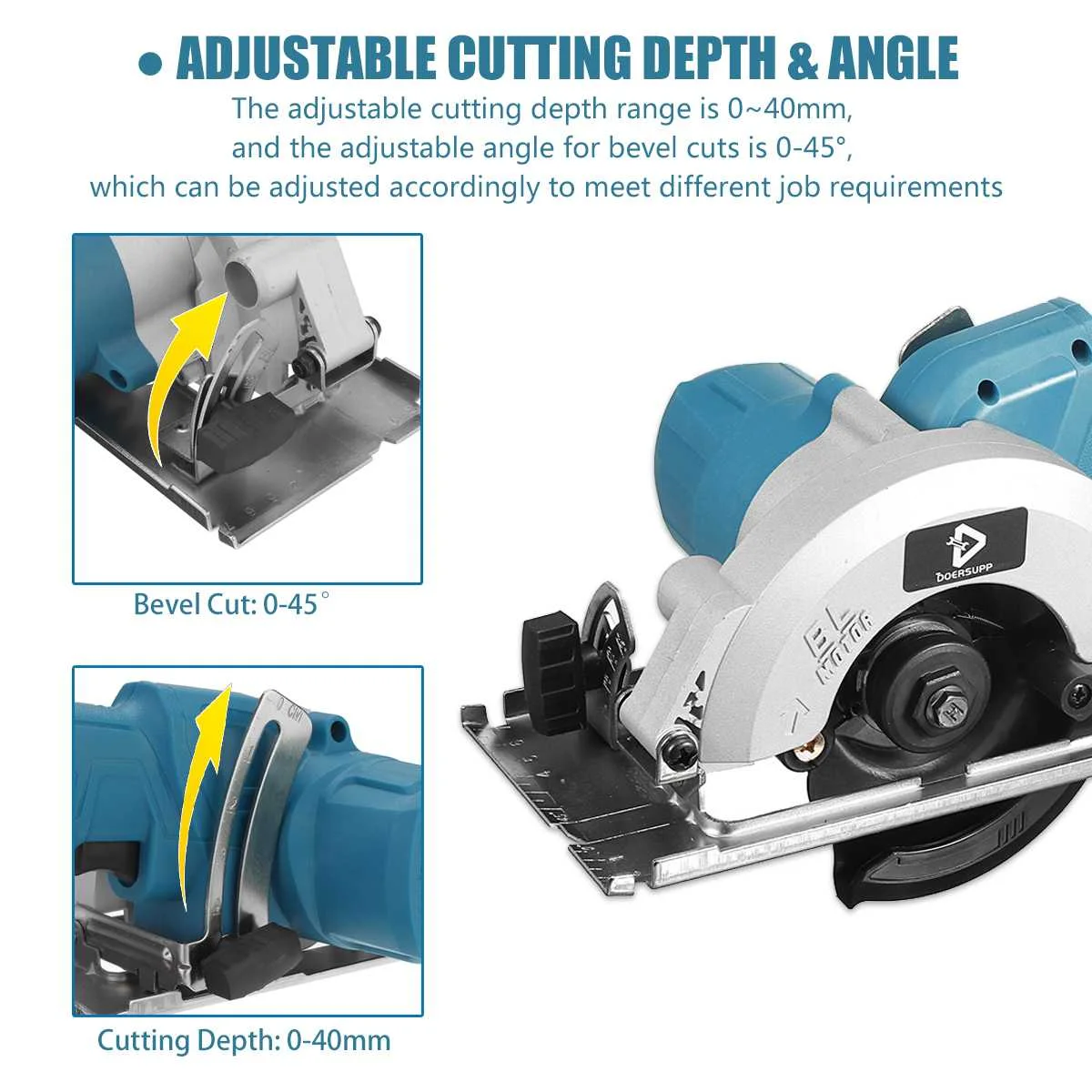 Примечание:-В комплект не входят пильные диски-Если у вас есть какие-либо проблемы или проблемы, пожалуйста, свяжитесь с нами, мы всегда на связи-Возможны отклонения в 2-5 см из-за ручного измерения. Спасибо за понимание-Мониторы откалиброваны не одинаково, цвет товара, отображаемый на фотографиях, может немного отличаться от реального объекта. Пожалуйста, примите реальный стандартОсобенности:● Набор Профессиональной циркулярной пилыЛевый боковик лезвия Улучшает точность и видимость лезвия и линии резки, а также оснащен гаечным ключом, вы можете легко заменить лезвие на инструментальный ключ● Бесщеточный двигательМощный бесщеточный двигатель с охлаждением вентилятора поддерживает большую скорость и более быстрые резки, длительную стабильность, улучшенную эффективность охлаждения, нелегко сжечь● Регулируемая глубина и угол резкиРегулируемый диапазон глубины резания составляет 0 ~ 40 мм, а регулируемый угол для скоса составляет 0-45 °, что может быть отрегулировано в соответствии с различными требованиями к работе● Рабочая кнопка блокировкиБлокировка режущих работ во время работы и снижение давления ручного управления● Литий-ионный аккумулятор большой емкостиМодернизированный литий-ионный аккумулятор обладает хорошей проводимостью, низкими потерями, более длительным сроком службы и длительным временем работы. Имеет схему защиты аккумулятора для предотвращения перегрузки, переразряда и перегрева● Портативный и легкийЛегкая конструкция электрической циркулярной пилы снижает усталость● Широкое применениеПодходит для резки фанеры, пегборда, ДСП, мягкой, твердой и инженерной древесины и многого другого● Большой циклонный теплоотводМощная система отвода тепла и низкотемпературный медный сердечник двигателя поддерживают непрерывную работу● Широкая и утолщенная Нижняя пластинаЧугунная Нижняя пластина цельной формы, которую нелегко деформировать и более прочную● Утолщенный защитный чехолВысокопрочный материал для предотвращения разбрызгивания искр и лучшей защиты безопасности пользователей● Цифровой дисплей батареиУровень заряда батареи хорошо виден, удобен для своевременной зарядкиХарактеристики:Вилка (опция): вилка ЕС/вилка СШАБатарея (опция):/Чистая металлическая батарея