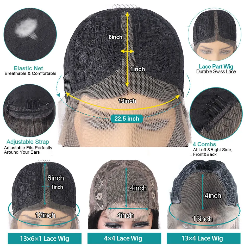 Lace Size13x4 Lace Front Wig,4X4 Closure Wig,13x1 Middle Part Wig