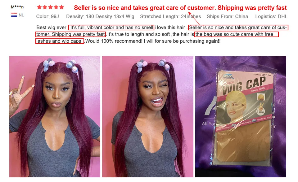 Этот парик очень мягкий и соответствует длине. Я был очень удивлен, насколько шелковистый материал. Не выцветает, кружево идеально и предварительно выщипывается. Продавец отлично общался. 100 определенно рекомендую!