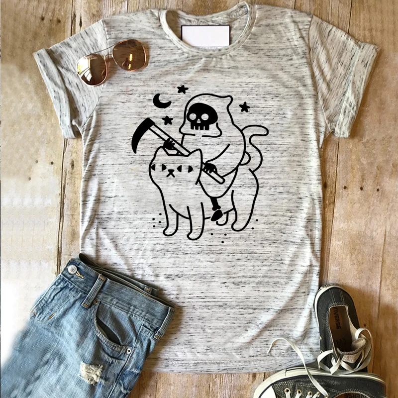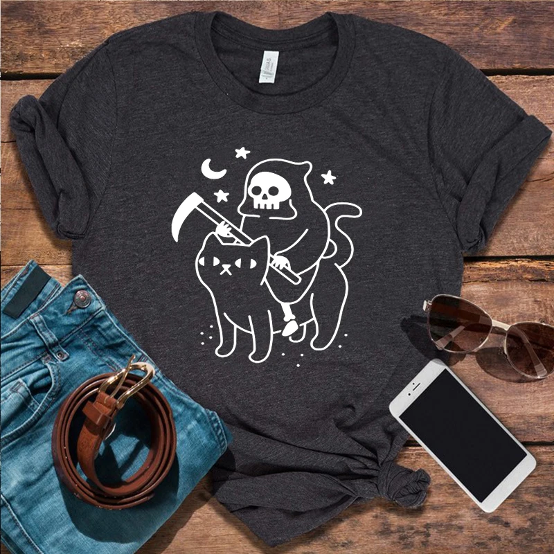 Винтажная Женская одежда в стиле Харадзюку на Хэллоуин, футболки в стиле фильма ужасов, футболки большого размера с изображением черной кошки, готические футболки размера XL