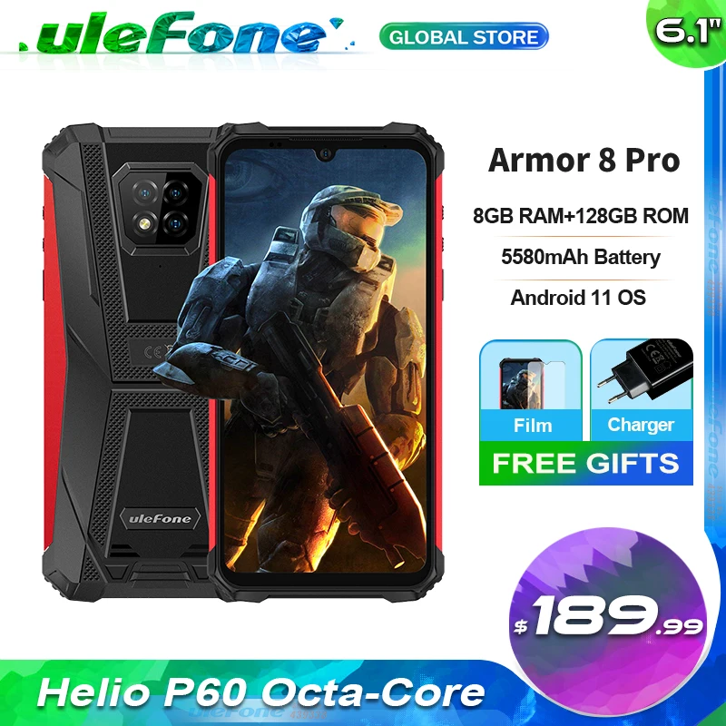 Смартфон Ulefone Armor 8 Pro защищенный, 6,1 дюйма, HD + 8 Гб + 128 ГБ, Helio P60, Android 11, NFC, 5580 мАч