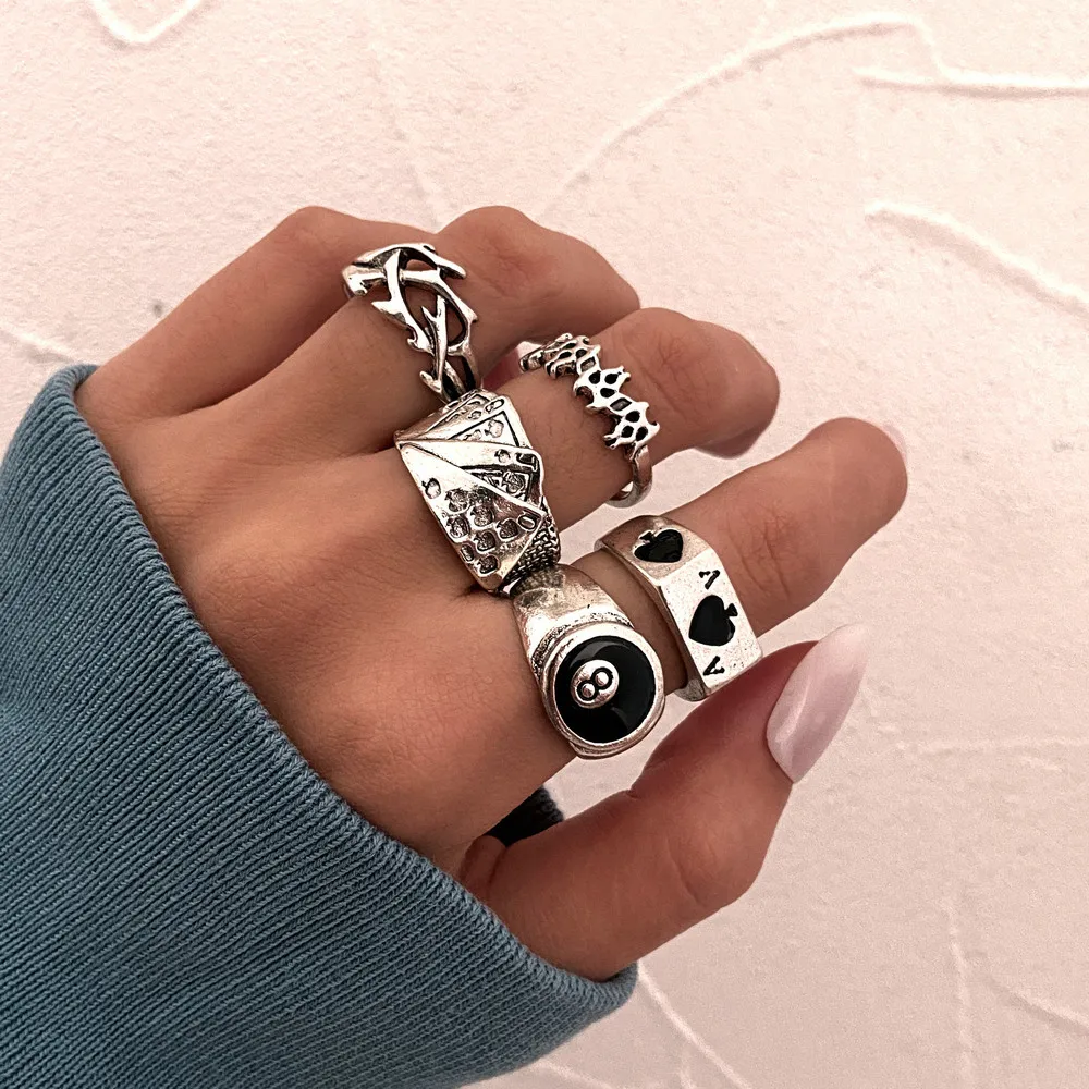 Креативный персональный набор колец, игральных карт, с номером змеи, кольцо в стиле ретро, пасьянс, в стиле хип-хоп, рок, панк, кольцо