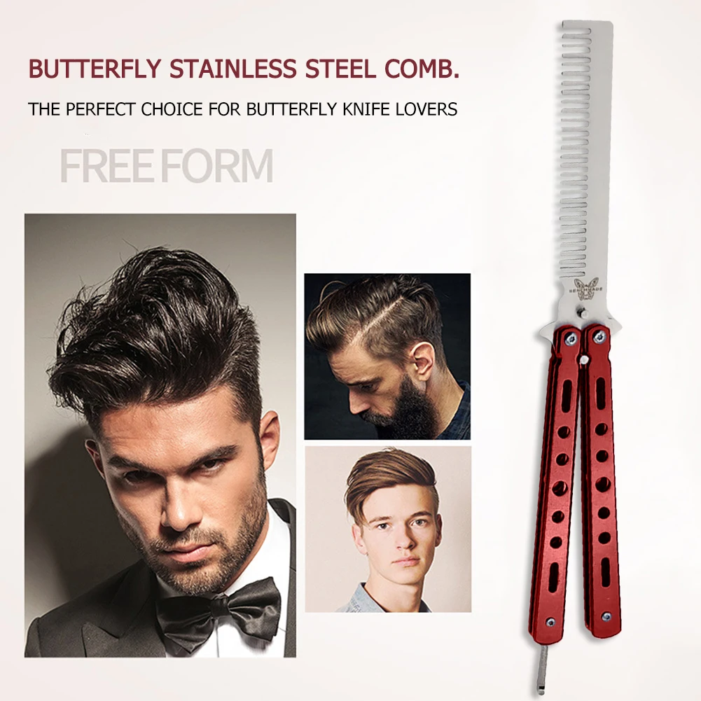 Складная расческа из нержавеющей стали тренировочный нож-бабочка расческа резак для бороды усы инструменты для парикмахерской