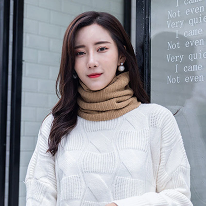 Зимний вязаный теплый шарф унисекс, осенняя Женская Бандана с кольц...