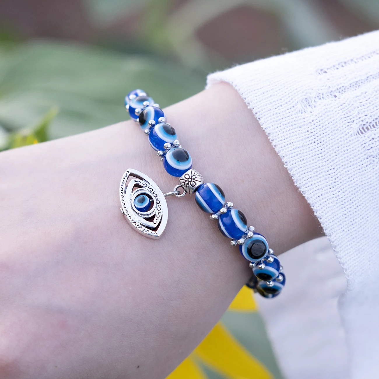 Женские эластичные браслеты Турецкий сглаза, 6 дюймов, новый стиль, слон, сова, черепаха