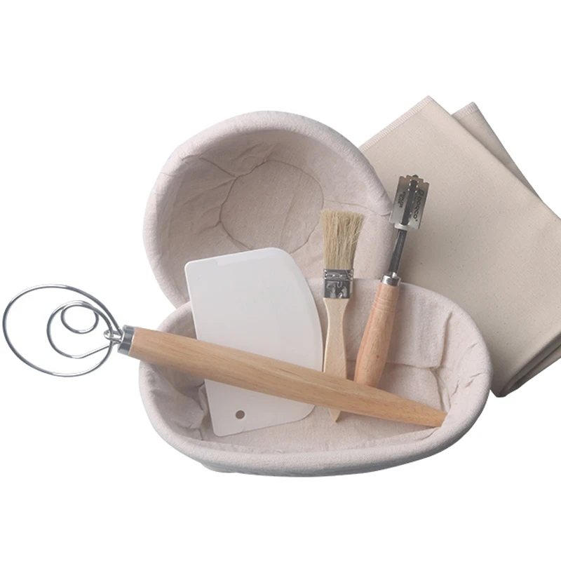 Набор из 7 предметов, корзина из натурального ротанга для снятия изоляции, баннетон для хлеба и льняная перемешивающая палочка, скребок для теста, щетка, кухонные инструменты