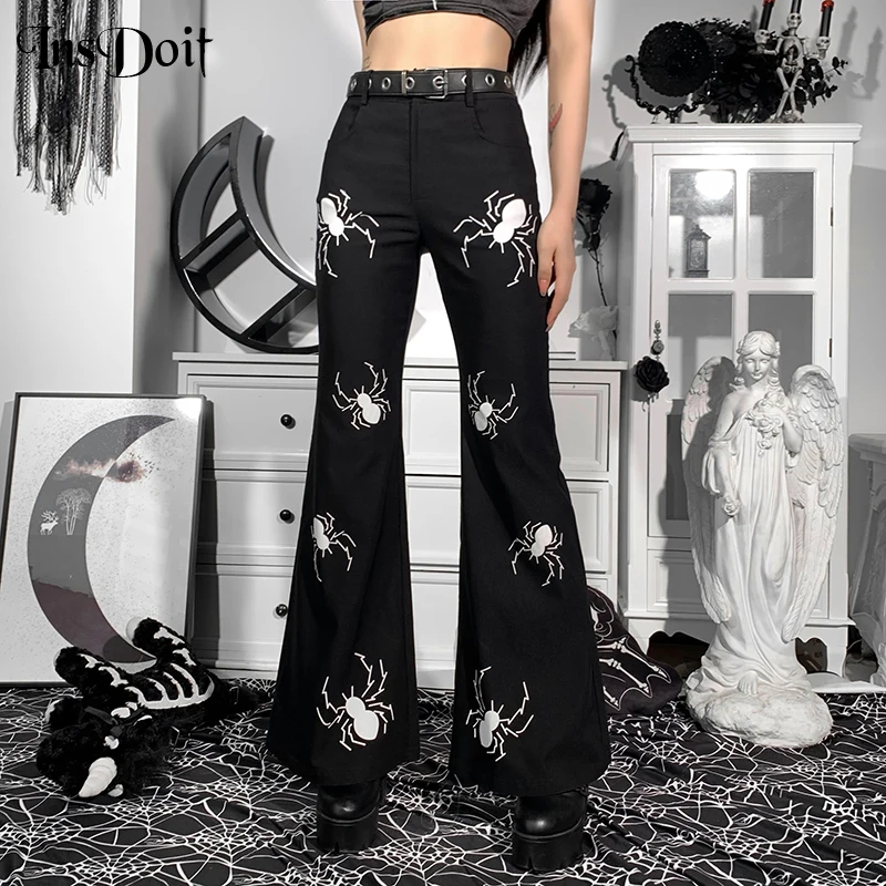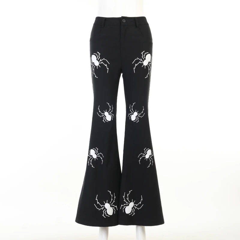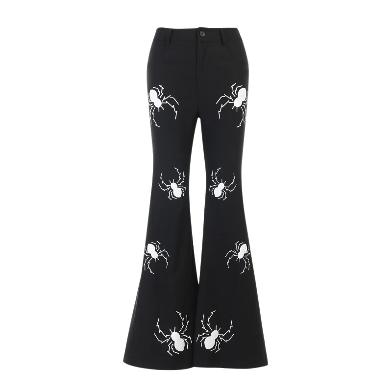 Брюки-клеш Женские винтажные в готическом стиле с высокой талией и принтом