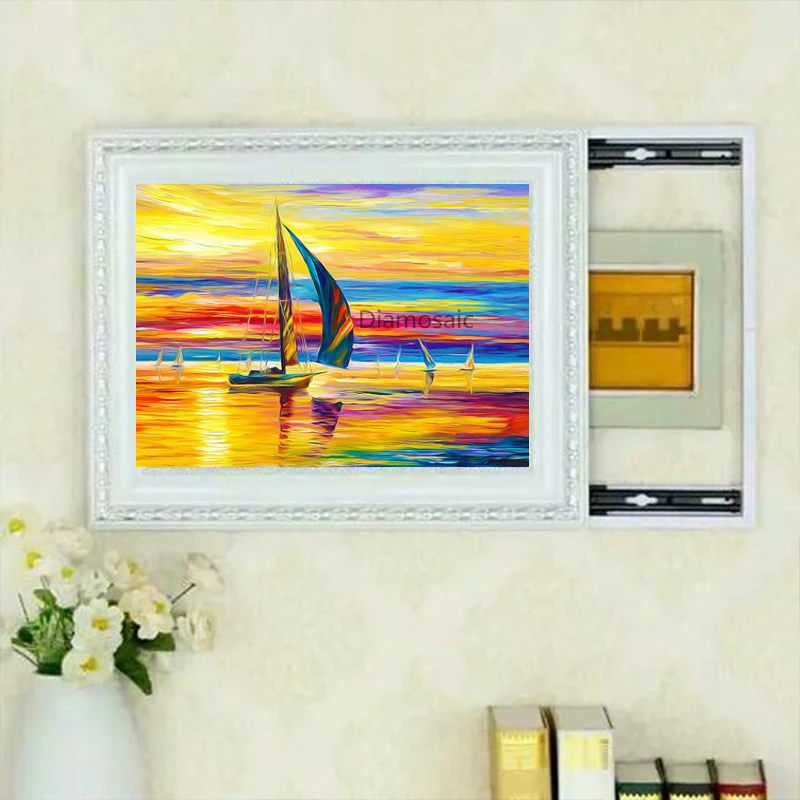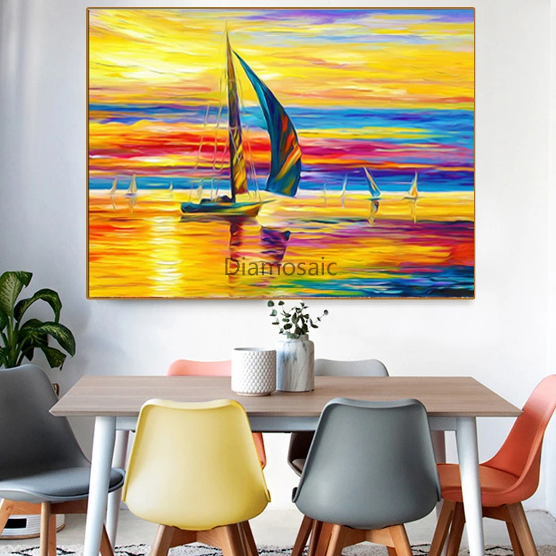 Алмазная 5D картина из страз сделай сам, Круглый квадратный закат, ...