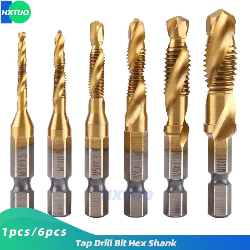 1 шт./6 шт. сверло с шестигранным хвостовиком с титановым покрытием винт из быстрорежущей стали резьбовое сверло винтовой станок составной кран M3 M4 M5 M6 M8 M10 инструменты для сверления