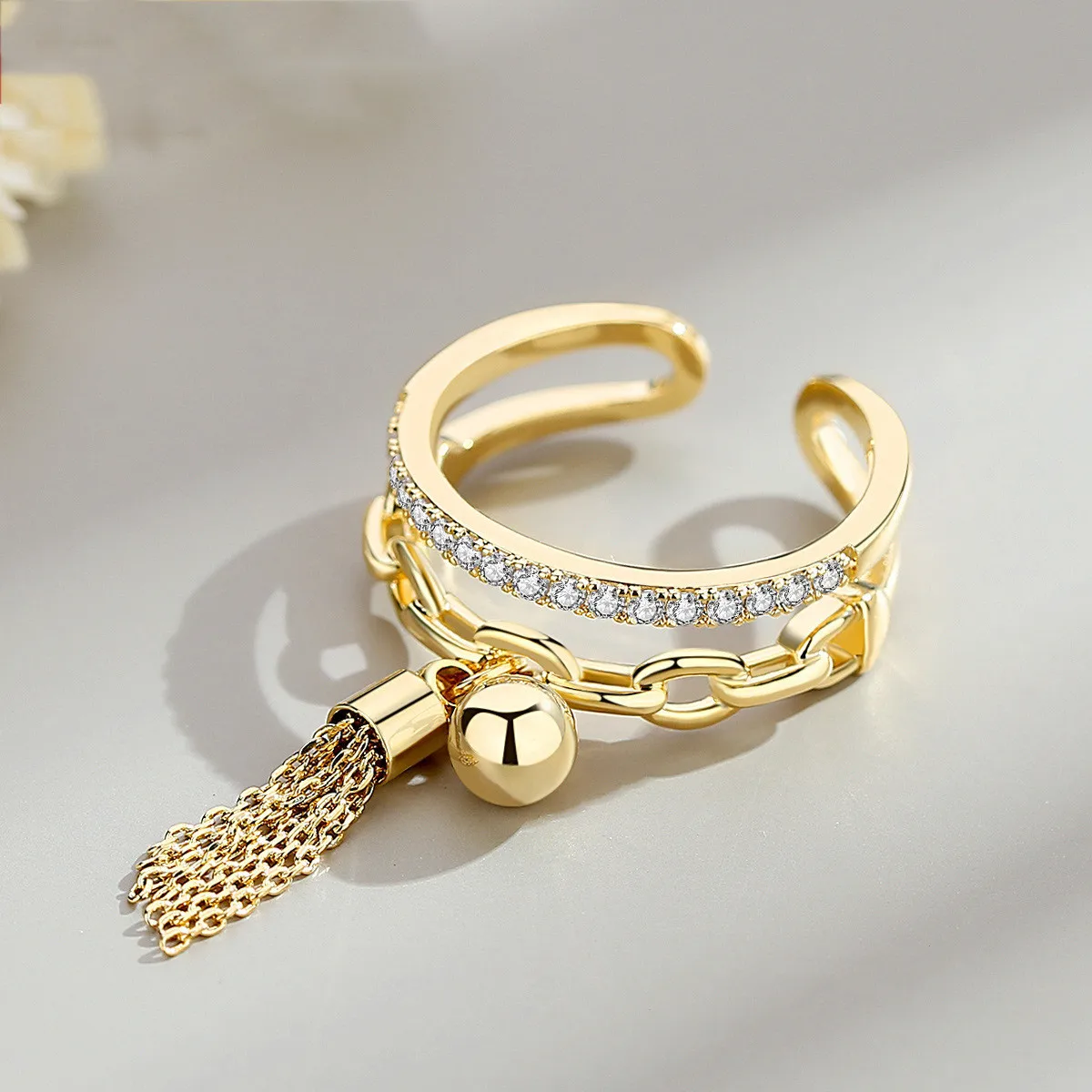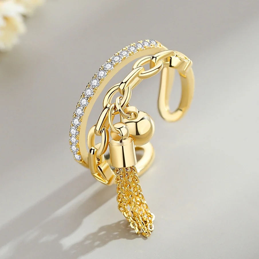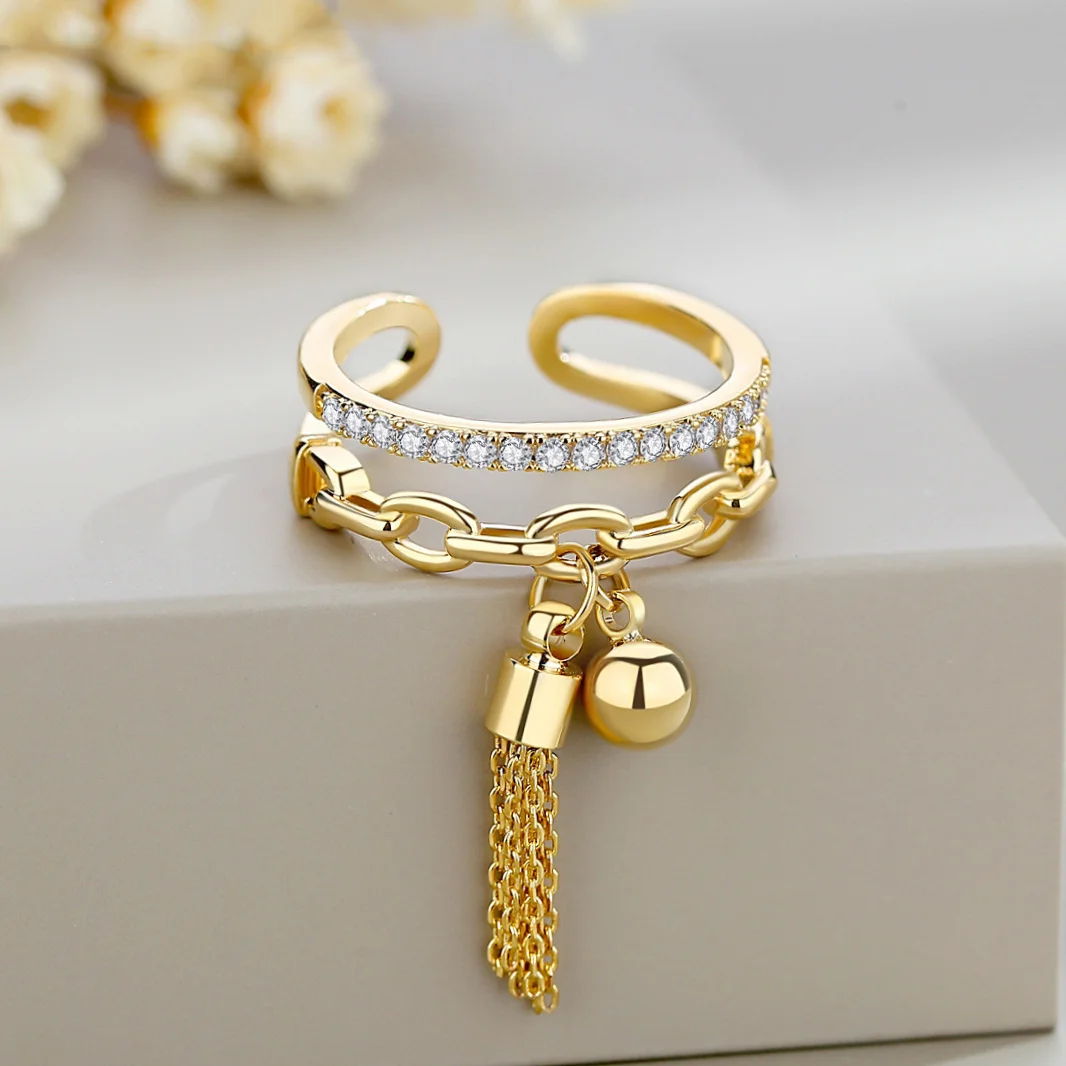 Женское кольцо с подвеской, регулируемое кольцо золотого цвета с ци...