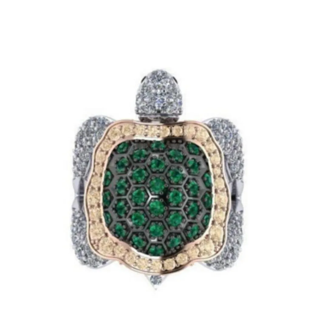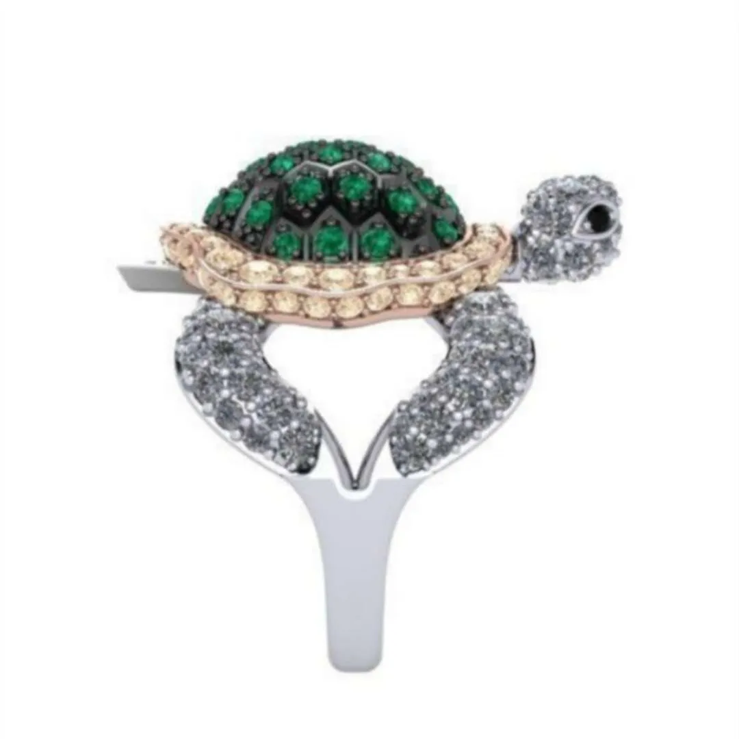 Модные уникальные циркониевые кольца в форме черепахи с инкрустацией из зеленого кристалла для женщин и девушек, лучшие подарки