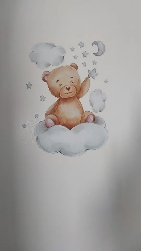 Мультяшные наклейки на стену в виде медведя и облака для детской ко...