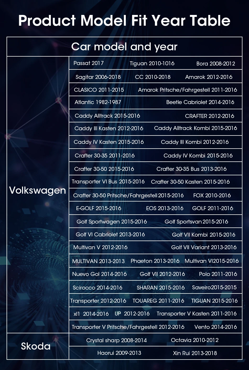 Название МоделиFor Volkswagen VW Passat B6 B7 CC Tiguan Touran GOLF POLO
