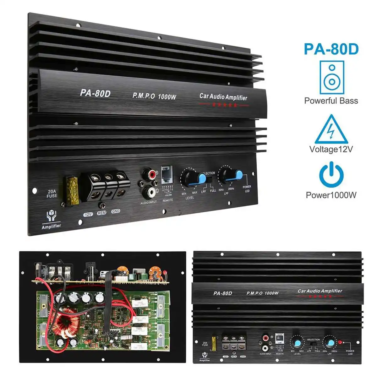 Динамик 12 В 1000 Вт, внешний сабвуфер, аксессуары для автомобильной аудиосистемы, одноканальный прочный усилитель высокой мощности без потерь, плата управления