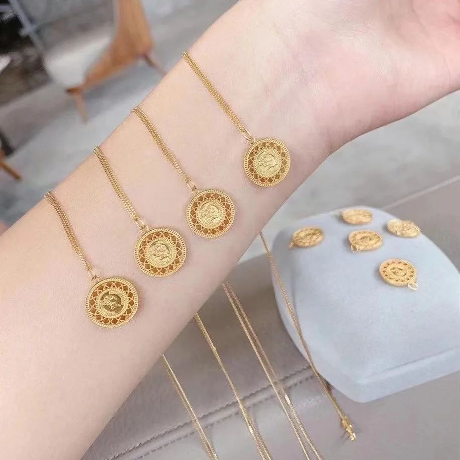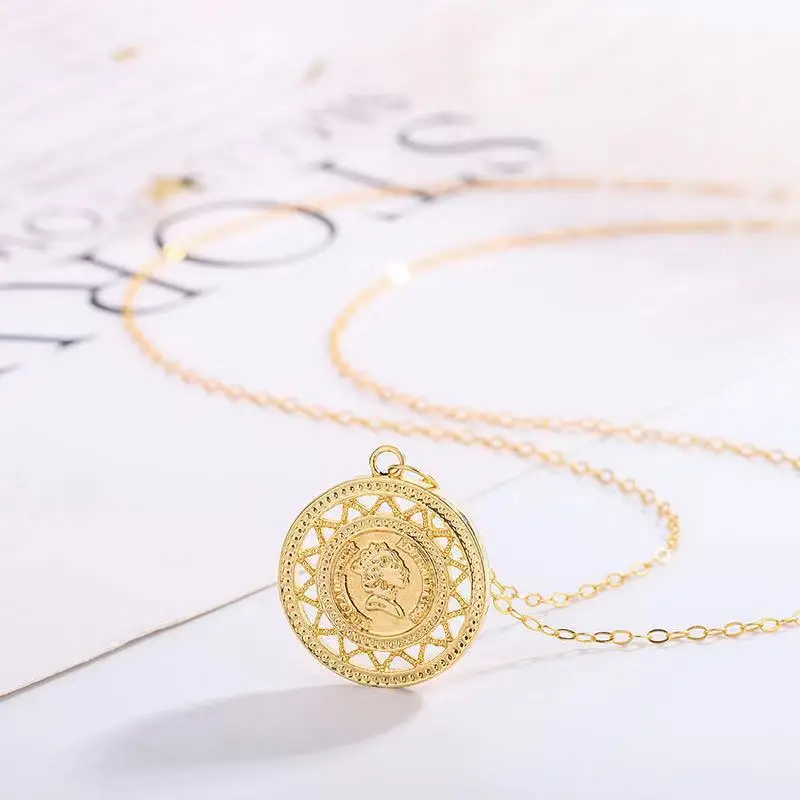Ожерелье CHUHAN из настоящего 18-каратного золота с круглой подвеской в виде монеты, модное простое ожерелье до ключиц AU750, оптовая продажа, Изящные Ювелирные изделия