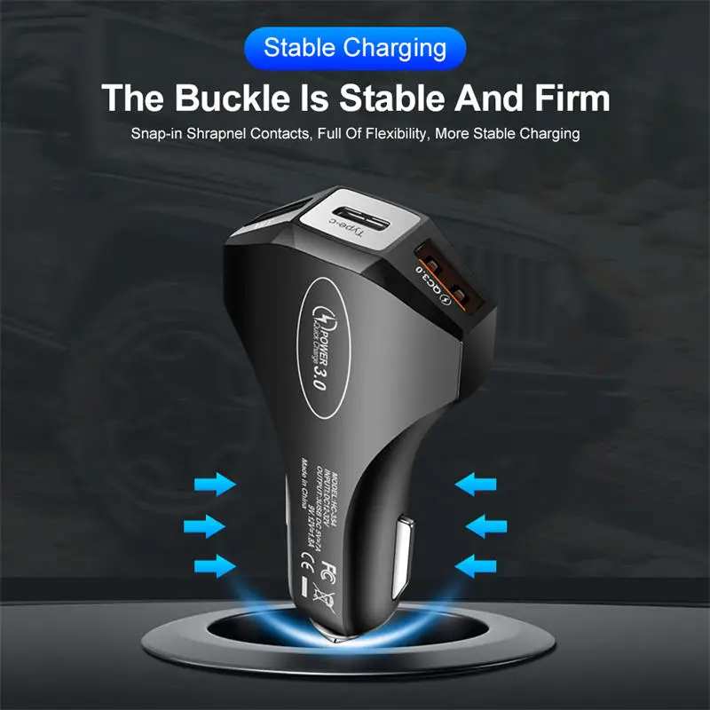 Название продукта:7A-QC3.0 + USB + Type-c молоток безопасности 35W Автомобильное зарядное устройство