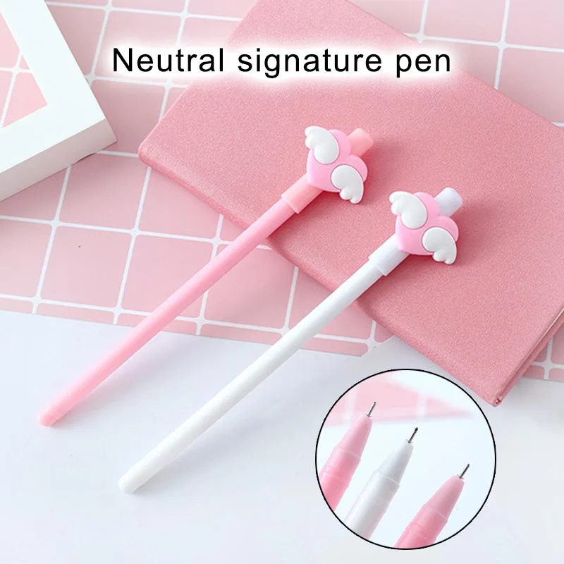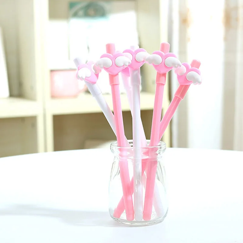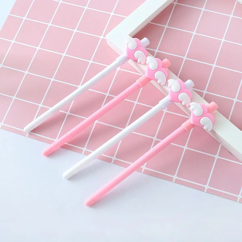 Гелевые ручки с белыми крыльями для девочек, 1 шт., кавайные ручки с розовыми сердечками и черными чернилами 0,5 мм, школьные и офисные канцелярские принадлежности, инструмент для подписи