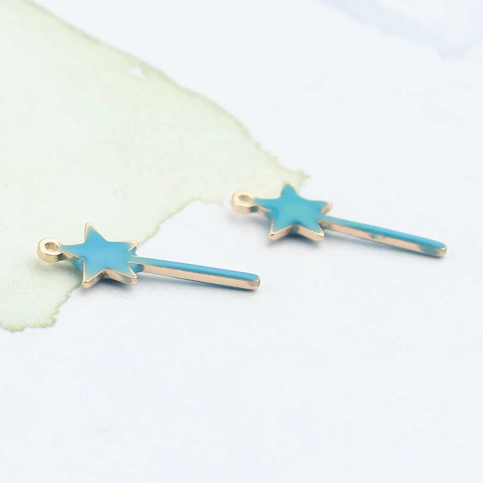 DoreenBeads 10 шт. медные двухсторонние эмалированные блестки звезда волшебная палочка шармы для DIY ручной работы изготовления ювелирных изделий 20 мм X 8 мм