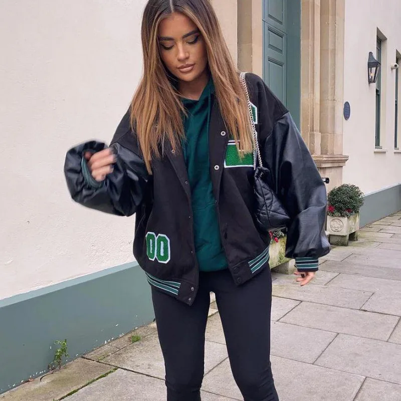 Куртка-бомбер Женская бейсбольная, из ПУ кожи, в стиле хип-хоп