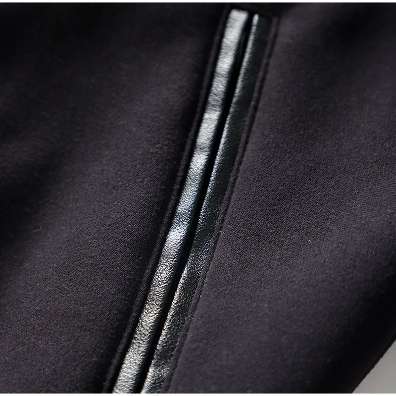 Размер М на рост 172 подошел. Фурнитура вся на месте, швы ровные, с изнанки обработаны. Ткань- синтетический трикотаж на изнанке с флисом , на бирке заявлено 20% хлопка, что вряд ли. Кожзам на рукавах средней плотности, при сильном сжатии остаются заломы. Подкладки в рукавах нет.