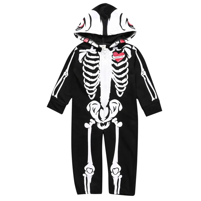 INS/комплект повседневной одежды для малышей; Комбинезон с длинными рукавами и рисунком черепа; Цельный комбинезон с капюшоном для новорожденных; Костюм для костюмированной вечеринки на Хэллоуин; Комбинезон; Одежда
