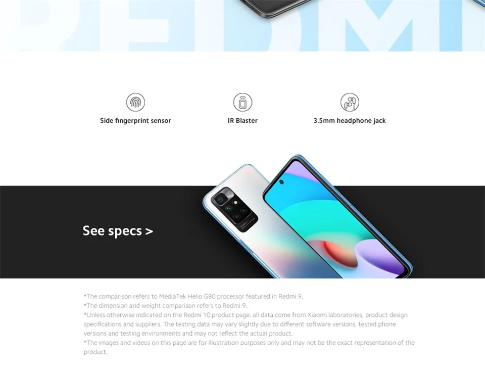 Смартфон Xiaomi Redmi 10, глобальная версия дюйма, 64 ГБ128 ГБ, 4 камеры 50 МП с ии, экран 90 Гц FHD +, Восьмиядерный процессор Helio G88, аккумулятор 5000 мА ч