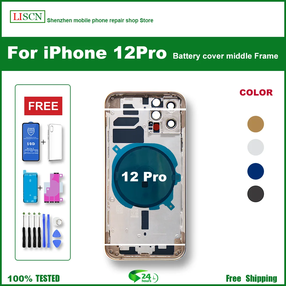Для iPhone 12Pro задняя крышка + средняя рамка Шасси + лоток для sim-карты + боковые ключевые детали корпус аккумулятора в сборе для iPhone 12Pro