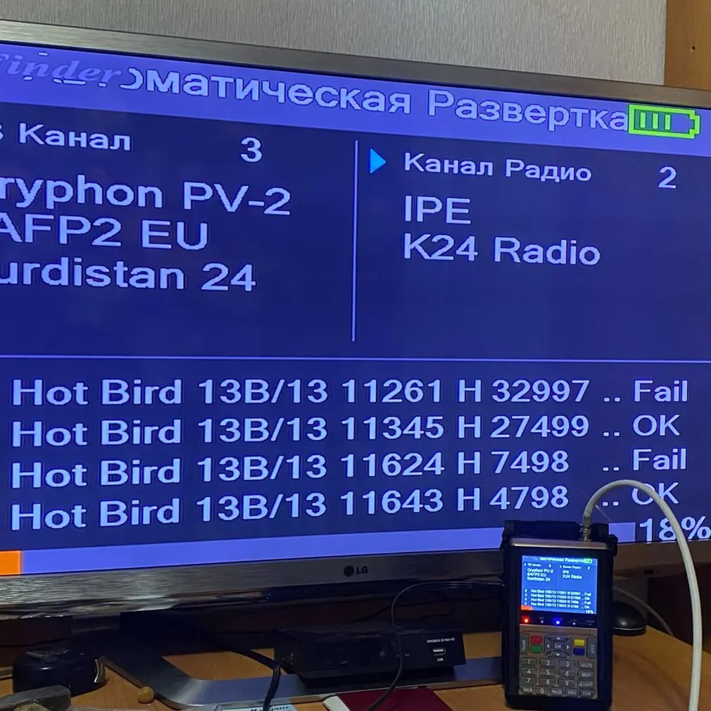 Этот SatFinder поддерживает тон DiSEqC1.0/1,1/1,2/USALSand 22 kHz, поддерживает AV вход и AV/HDMI-совместимые выходные функции.
