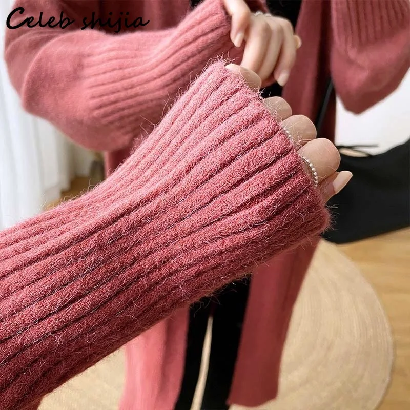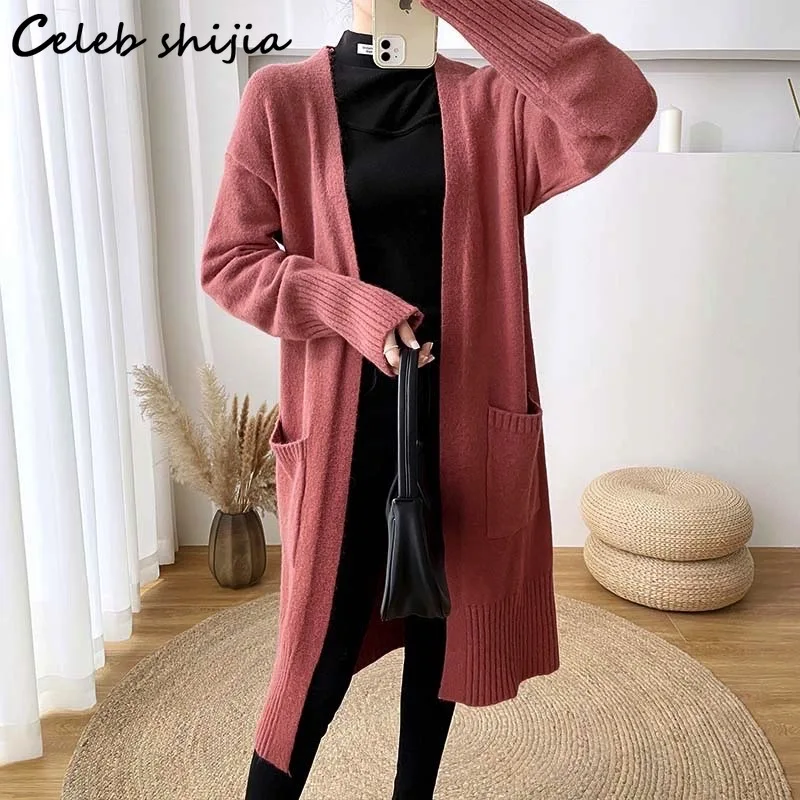 Кардиган женский шерстяной, длинный вязаный, оверсайз, в Корейском ...