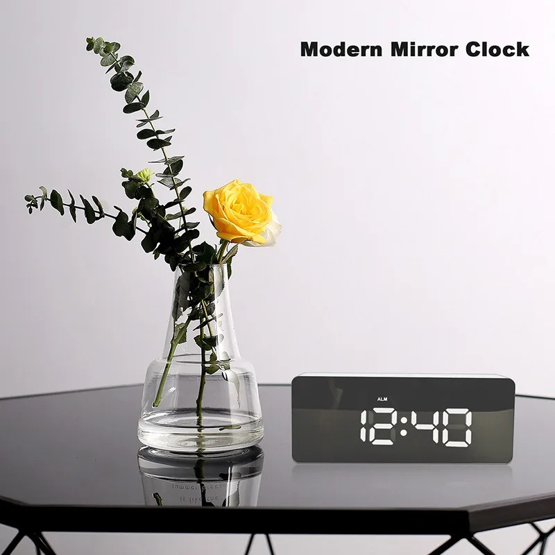 Большой дисплей светодиодный зеркальный цифровой будильник ночник термометр настенные часы лампа многофункциональные настольные часы USBAAA