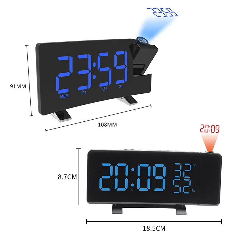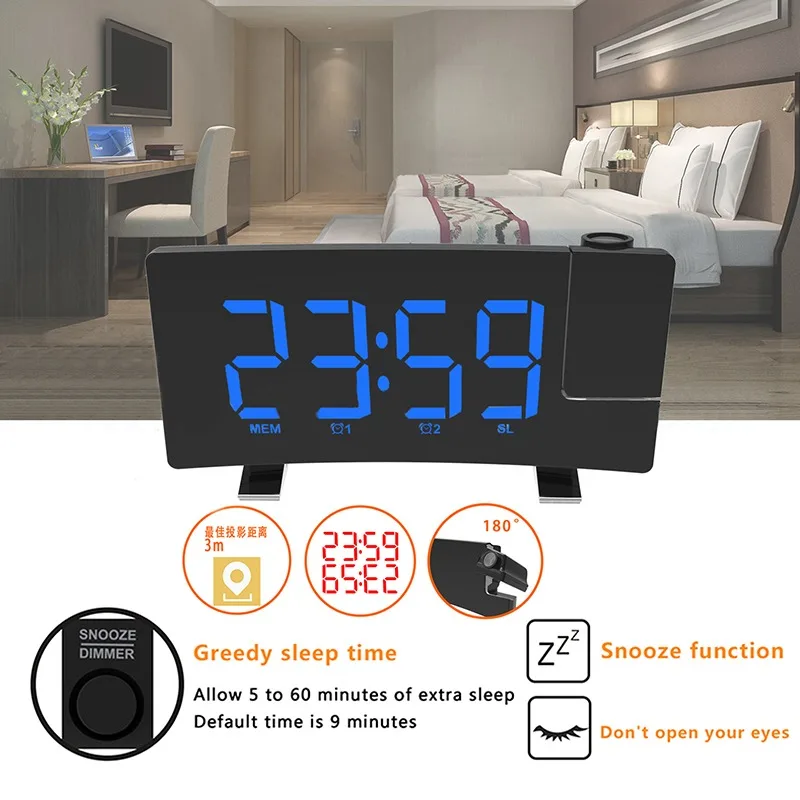 Часы с FM-радио, светодиодсветодиодный цифровые часы с проекцией, умные часы с будильником, настольные электронные часы, будильник с функцией будильника, 2 будильника