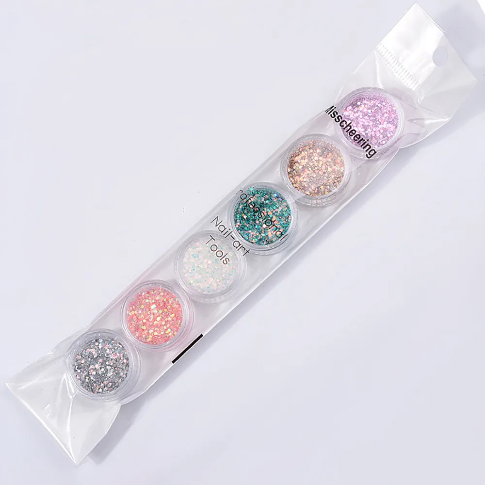1x 6 видов цветов пудра с пайетками Ослепительная наклейка красочное украшение для ногтей