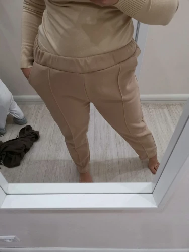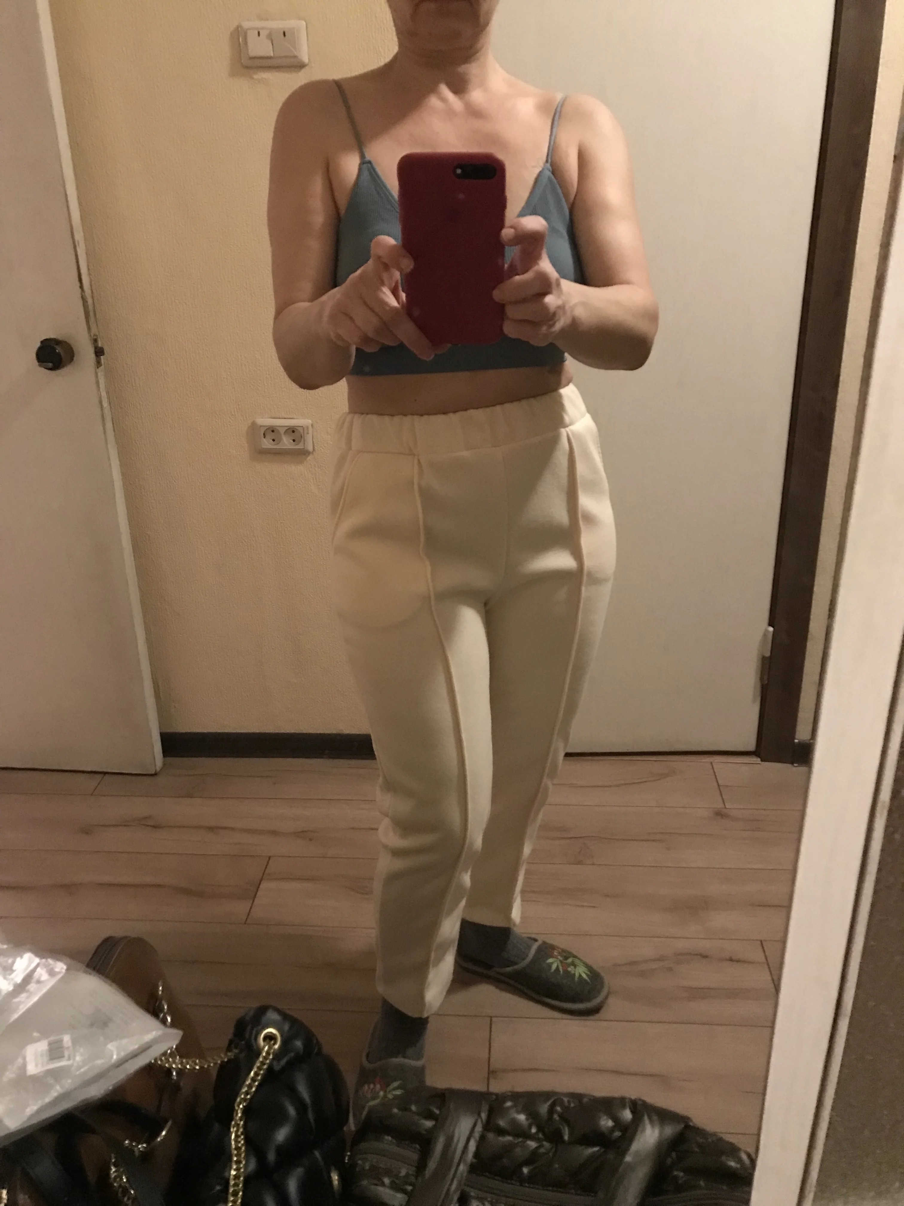 Брючки не смогла полностью оценить..на свой 46-48,бедра 100..хотелось бы посвободнее,но это я так люблю.посадка не высокая,надо было брать не XL,а как минимум 2хл что бы сидели так как хочется,на рост 165 до щиколотки.теплые,но конечно большая часть синтетика..